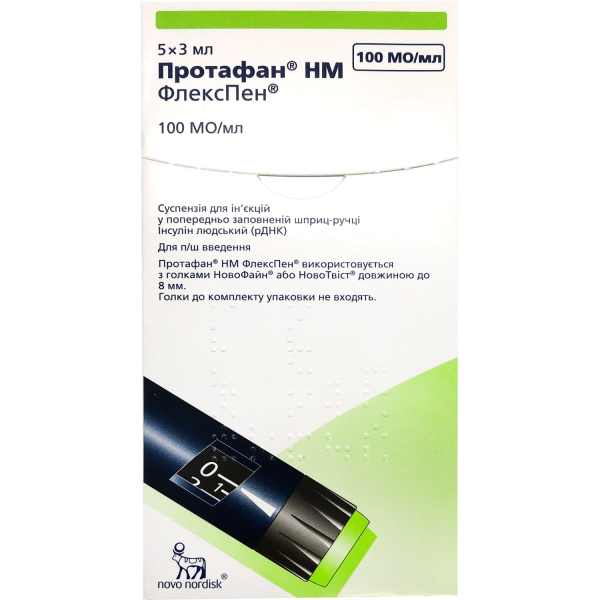 ПРОТАФАН НМ ФЛЕКСПЕН суспензія для ін'єкцій 100од/мл картридж 3мл багатодозовий шприц-ручка №5